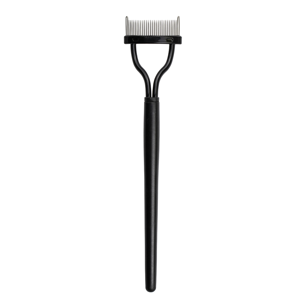 Аккуратно расположенные металлические зубчики помогают убрать излишки туши и разделить ресницы. Анатомическая форма расчески делает использование максимально легким. Длинная ручка обеспечивает удобство при использовании. После использования расческу легко очистить, а для поддержания чистоты зубьев присутствует пластиковый колпачок.