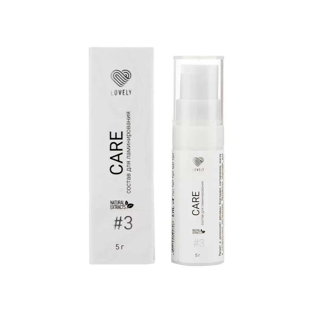 Состав для ламинирования №3 «Care» является третьим этапом в процедуре ламинирования и выполняет несколько функций: очистка ресниц от клея, питание и увлажнение ресниц, которые становятся ослабленными после химического воздействия. В дальнейшем для поддержания здоровья ресниц и восстановления их силы необходимо проводить ежедневные уходовые процедуры, в частности рекомендуется использовать ботокс для ресниц.