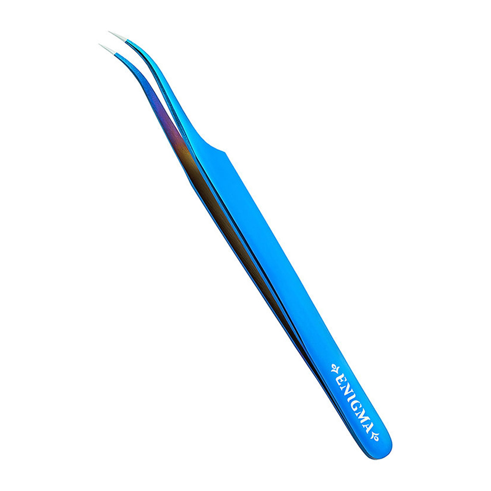 Пинцет Enigma с ручной заточкой extra-sharp, Изогнутый new, Blue metallic