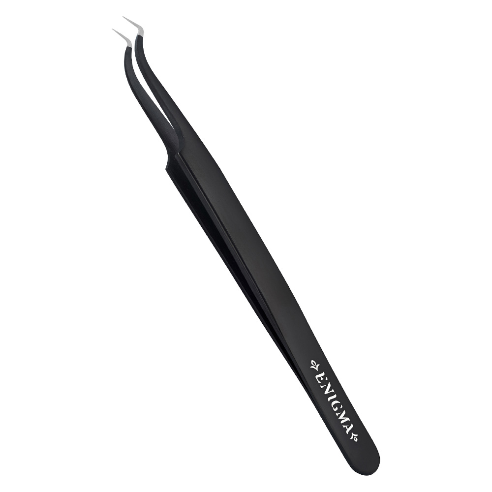 Пинцет Enigma с ручной заточкой extra-sharp, Изогнутый, Тип Мини-L, 90 градусов, Black