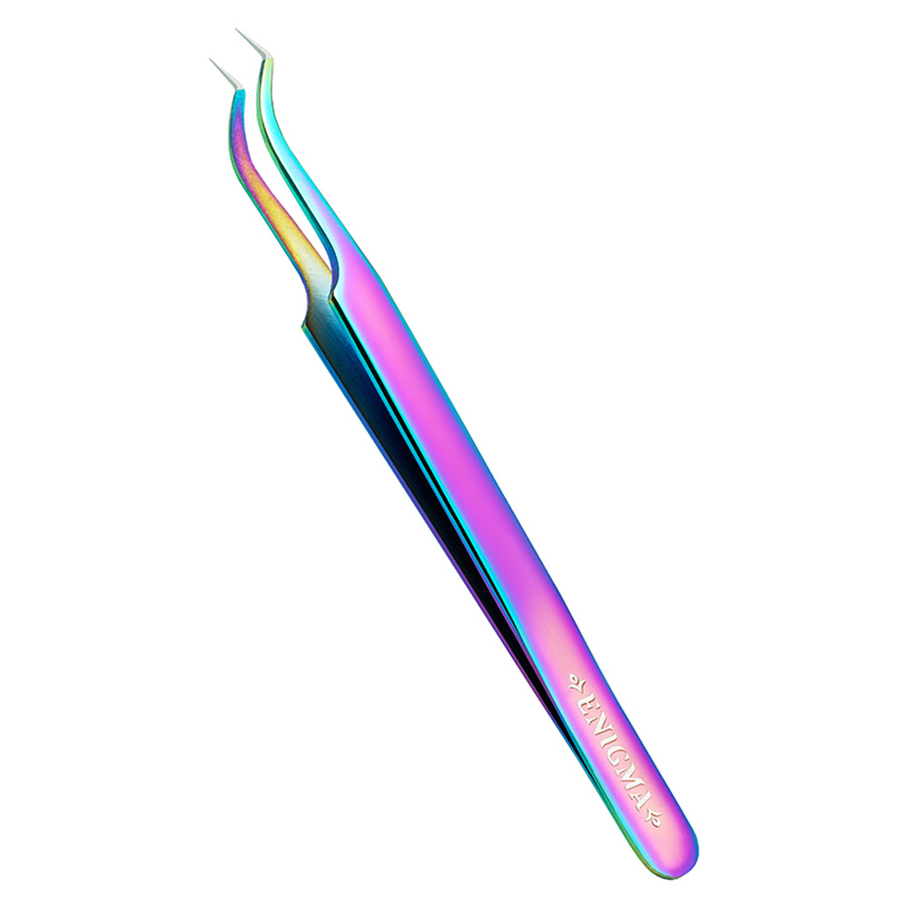 Пинцет Enigma с ручной заточкой extra-sharp, Изогнутый, Тип Мини-L, 90 градусов, Chameleon